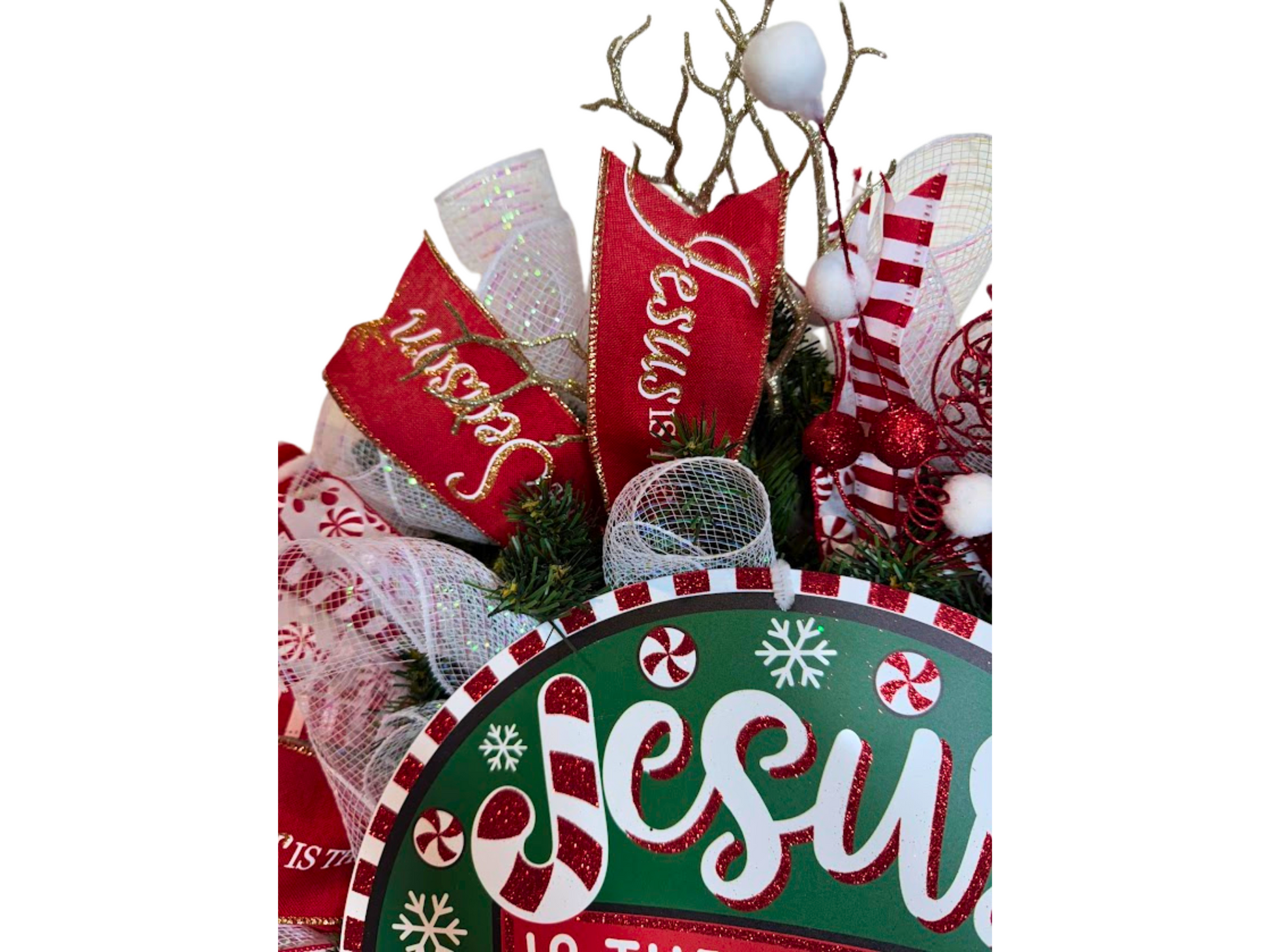 Celebrate the true spirit of Christmas with our Jesus Is the Reason Wreath. This stunning holiday wreath features a beautiful combination of red and white ribbons with festive peppermint accents, perfectly surrounding a bold, heartfelt sign that reminds everyone of the reason for the season. Whether you’re looking to add a religious touch to your home decor or gift it to a loved one, this wreath is a unique and meaningful addition to any front door or wall.
