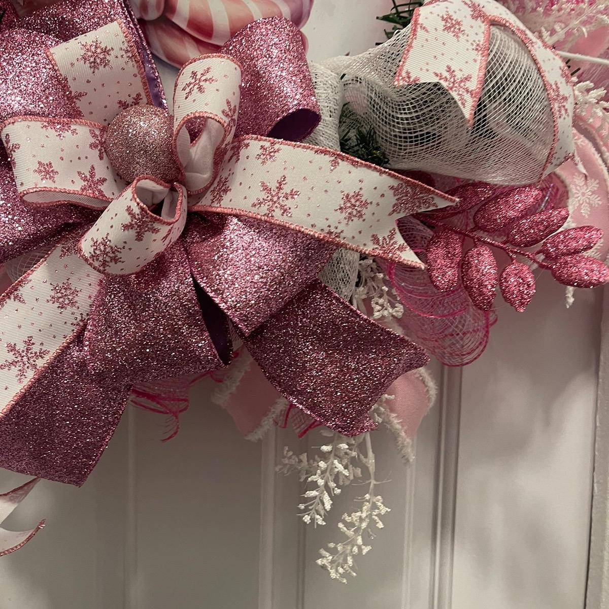 The Snowgirl Wreath is an adorable addition to your family's Christmas decor. Handmade on an evergreen base, this winter wreath is adorned with quality ribbon, mesh, and pick sprays. The sign is made of aluminum and UV coated for durability. Perfectly sized for indoor door decor, this wreath will bring a smile to visitors of all ages. Add a touch of pink and snowman charm to your home with this charming hanging decor!