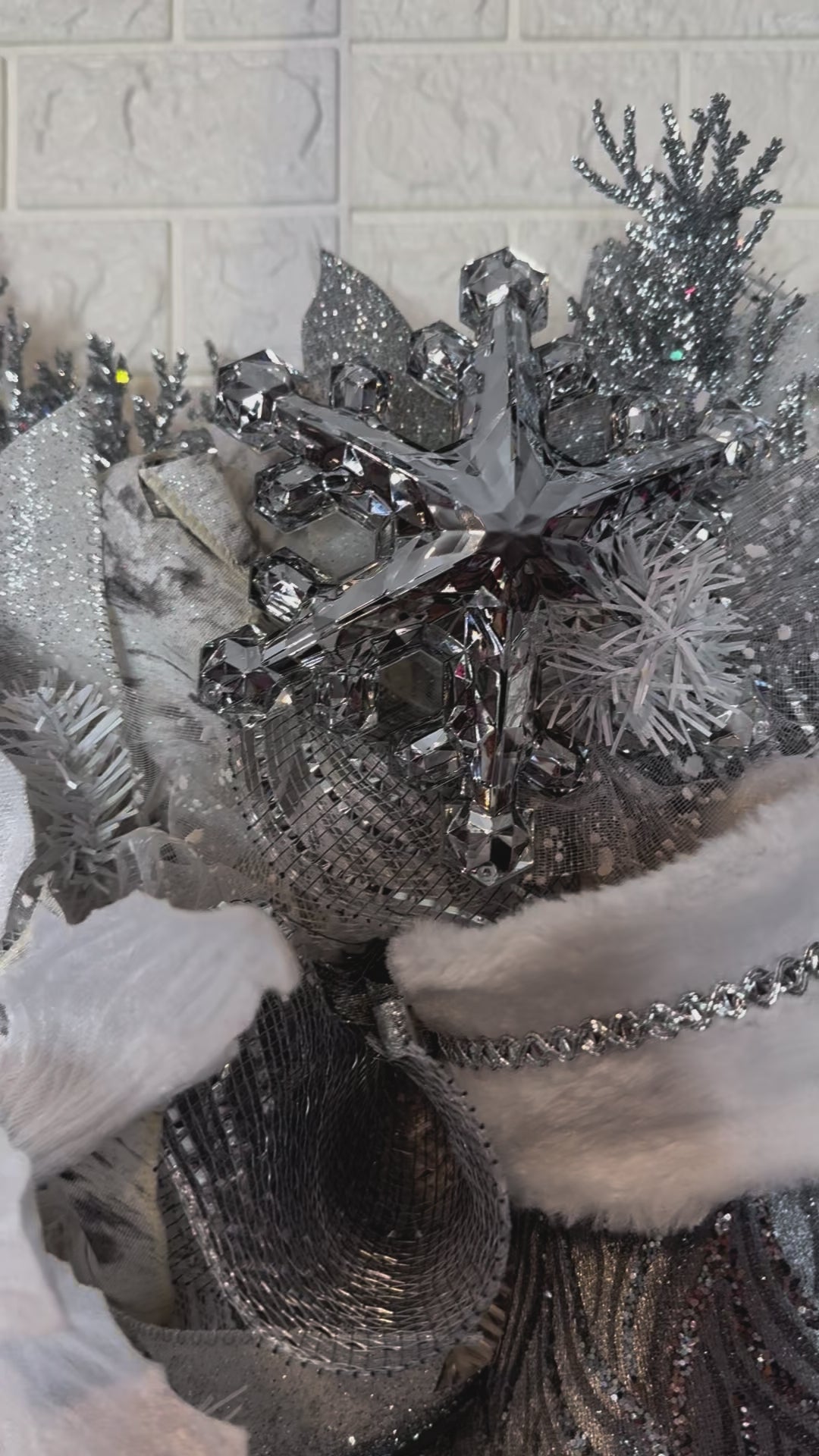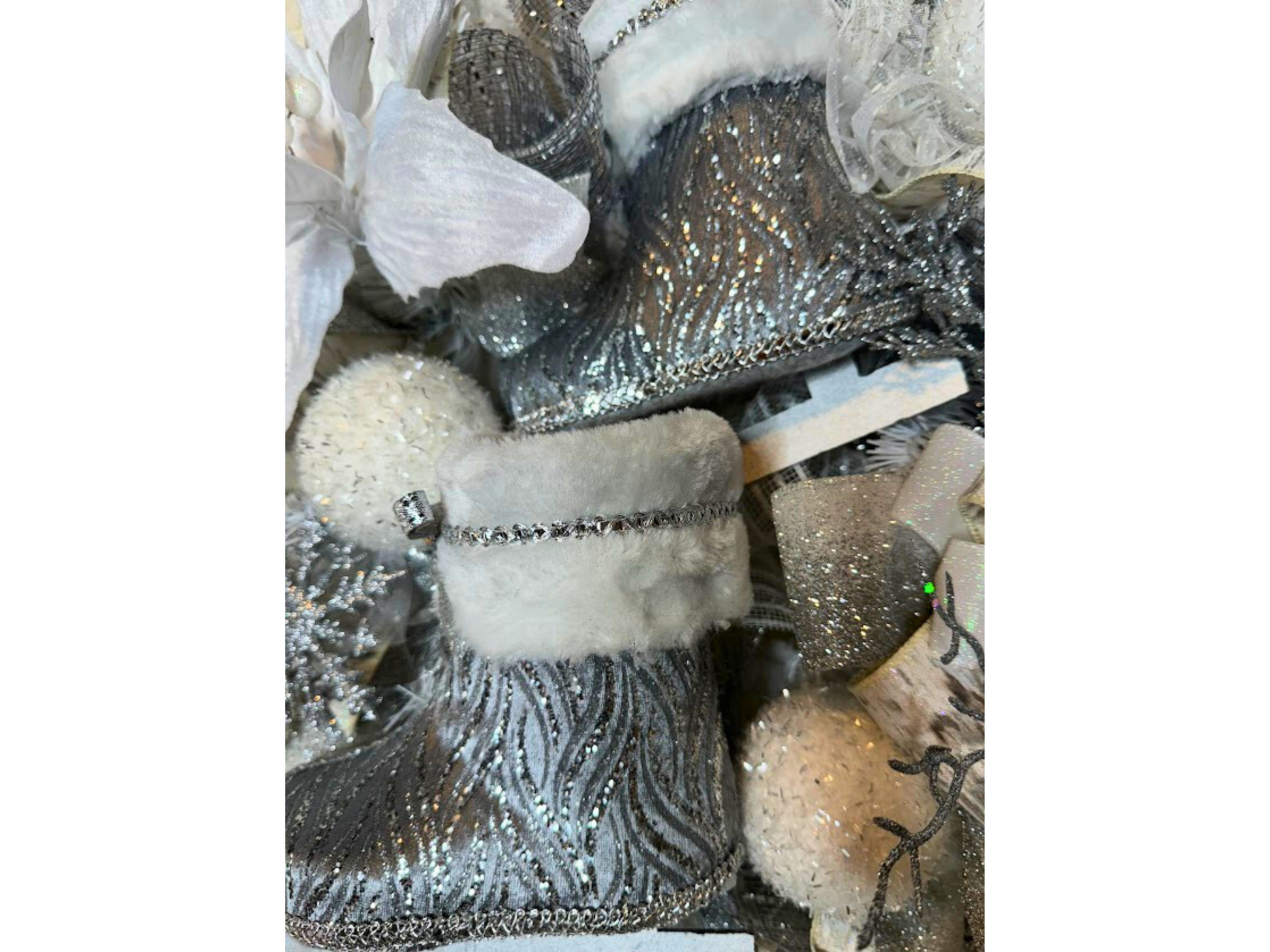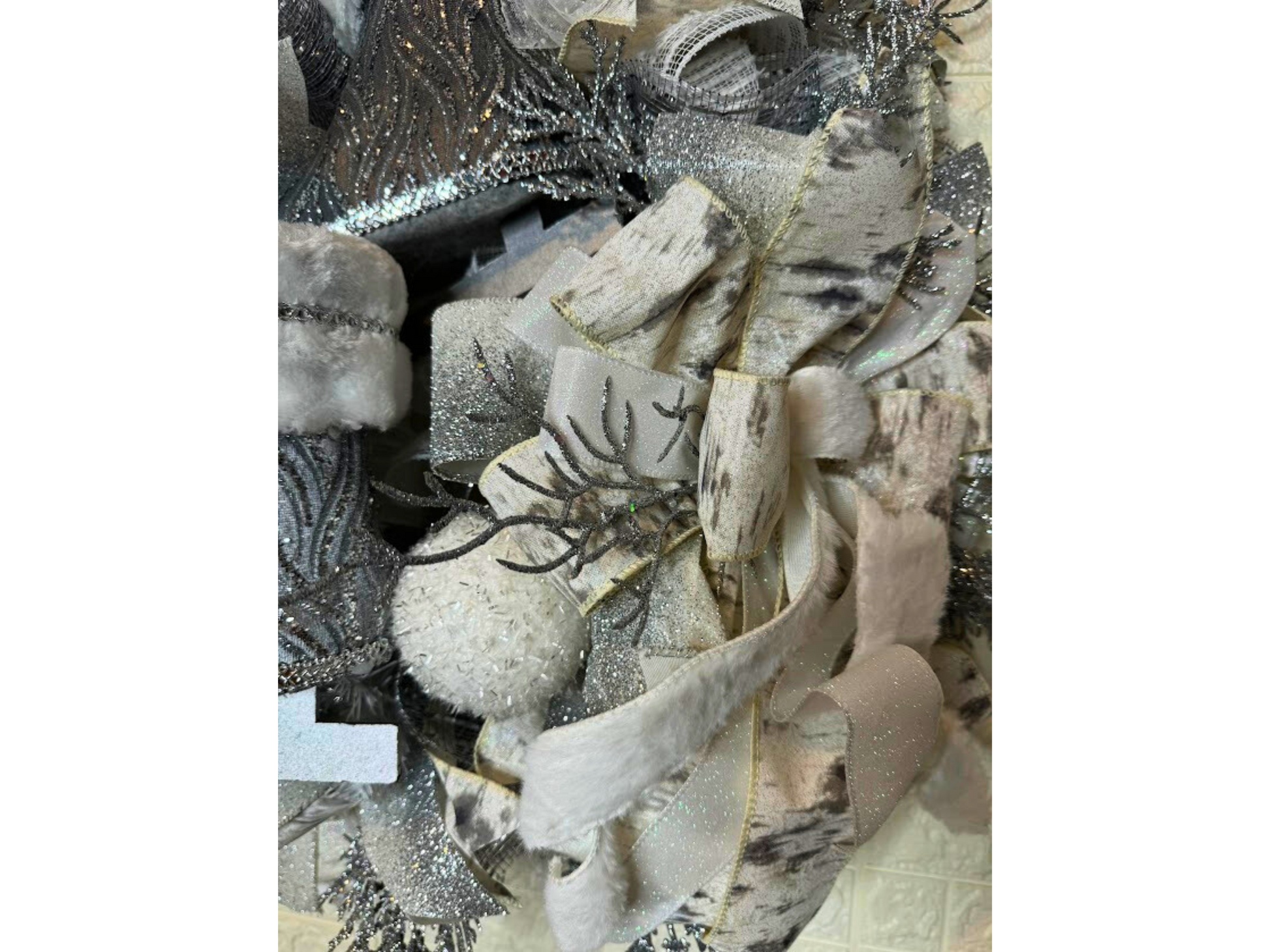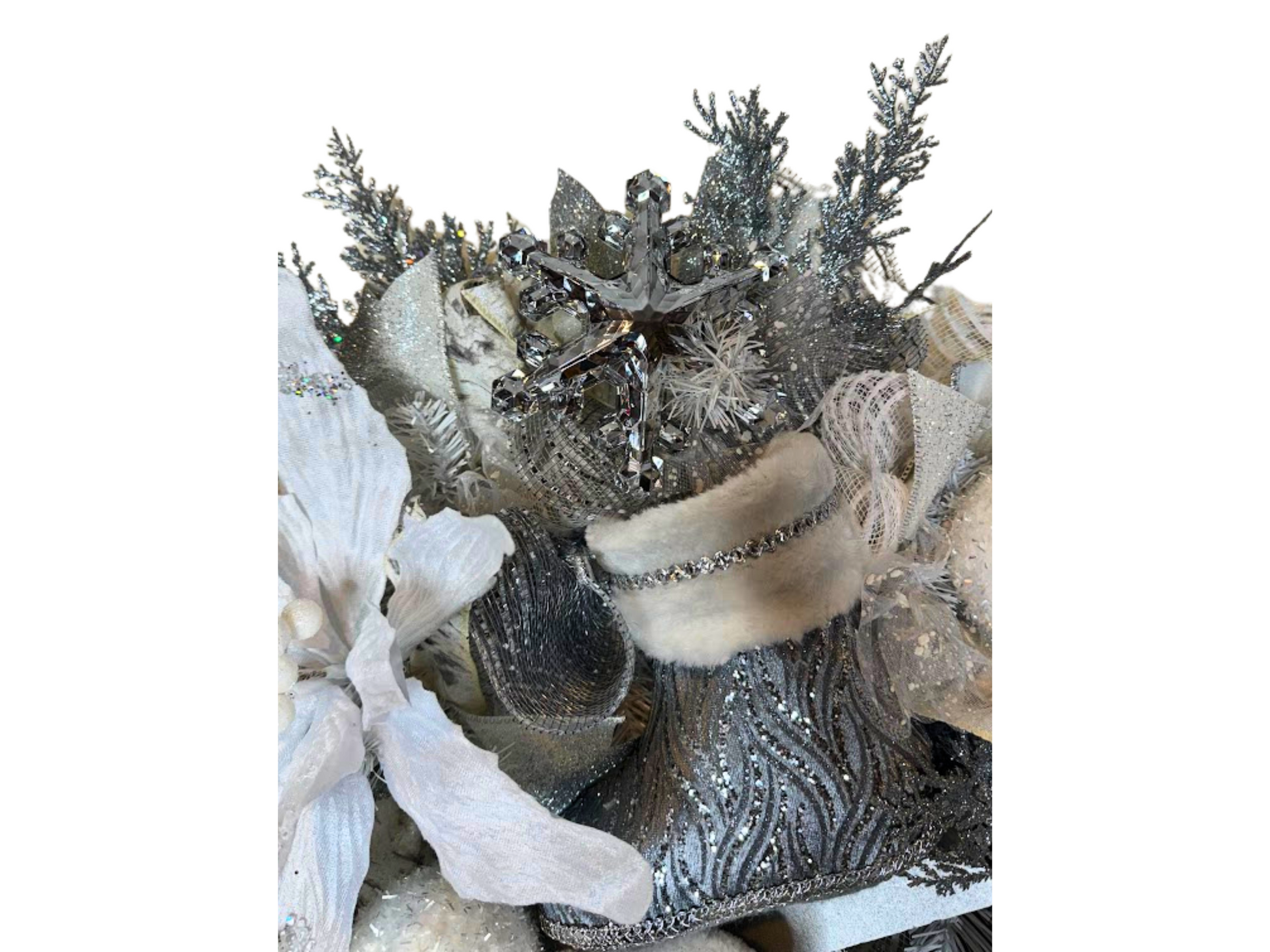 Welcome the winter season with this stunning Winter Ice Skates Holiday Wreath! This handmade wreath features delicate frosty white and silver tones, accented with elegant ice skates, lush greenery, shimmering ornaments, and ribbons. Perfect for bringing a touch of winter wonderland to your front door or as a charming indoor display, this wreath makes a beautiful addition to your holiday décor.