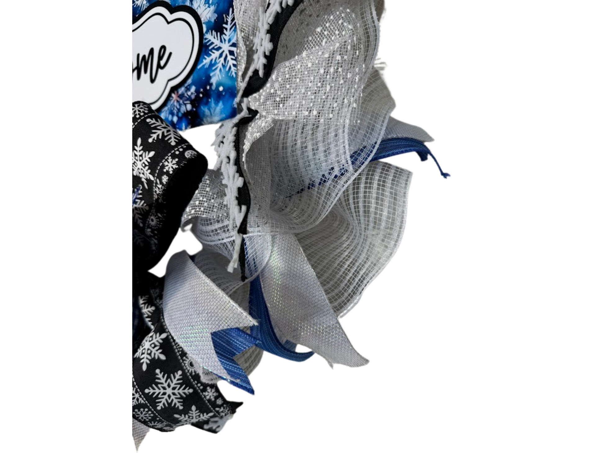 Winter Welcome Wreath with Snowflakes, Handmade Blue and White Front Door Decor, Holiday Snowflake Ribbon Wreath, Winter Door Decoration